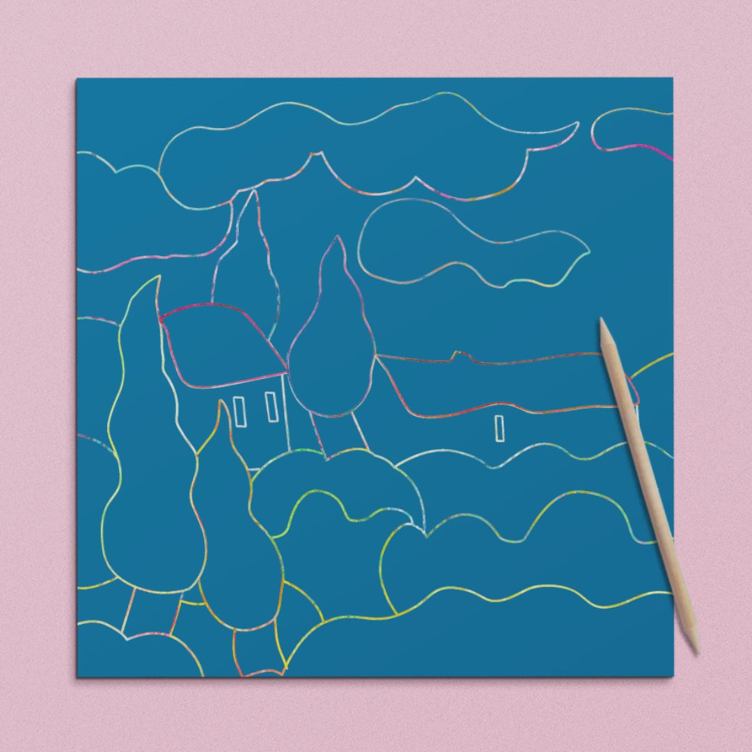 A pack of scratch cards that invites children to discover the style of Vincent Van Gogh, the great master of pre-fauvism. Using the wooden stylus, children scratch the surface of the cards, revealing the motifs imagined by the illustrator. Thus, the images are gradually revealed and the landscapes come to life.