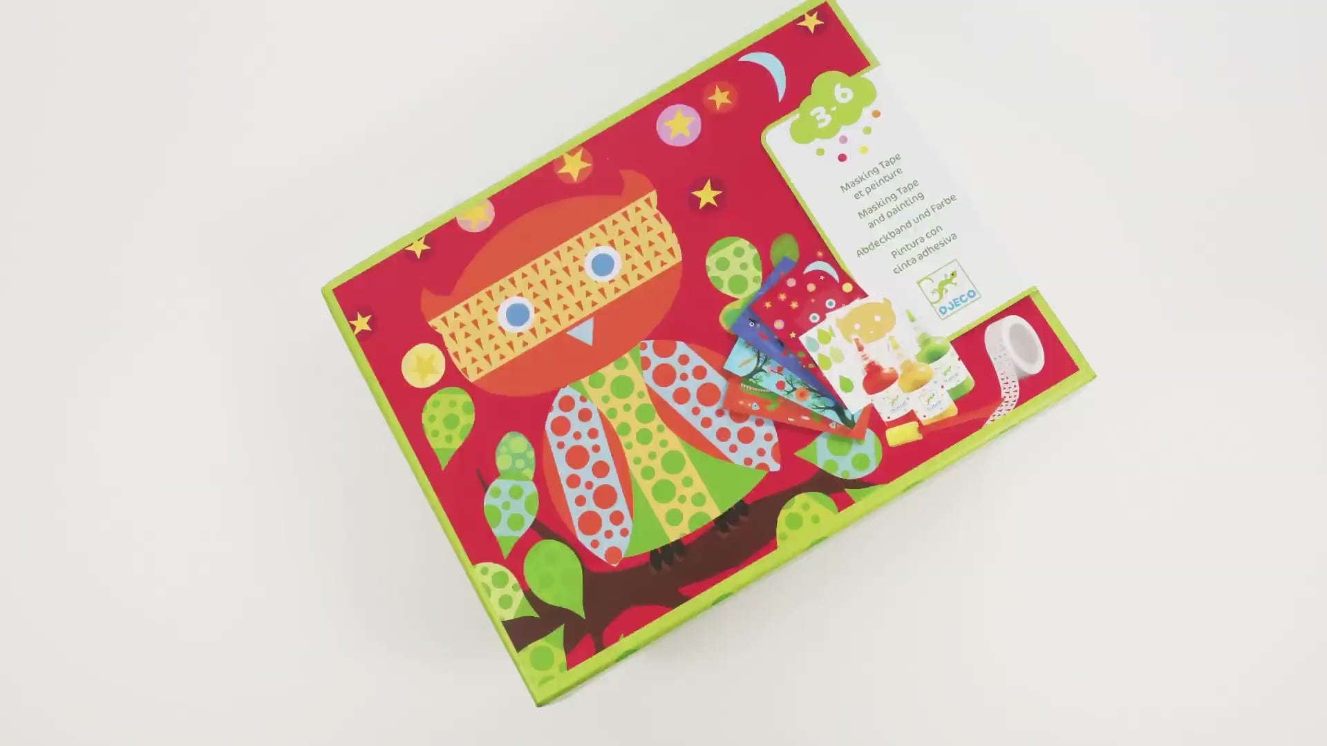 Oh Its MagicA large painting set with an animal theme. After protecting the table with the tablecloth, the child sticks the serrated masking tape on the large picture cards and paints over them. Once the paint is dry, he or she removes the masking tape and discovers beautiful patterns. It's magical.