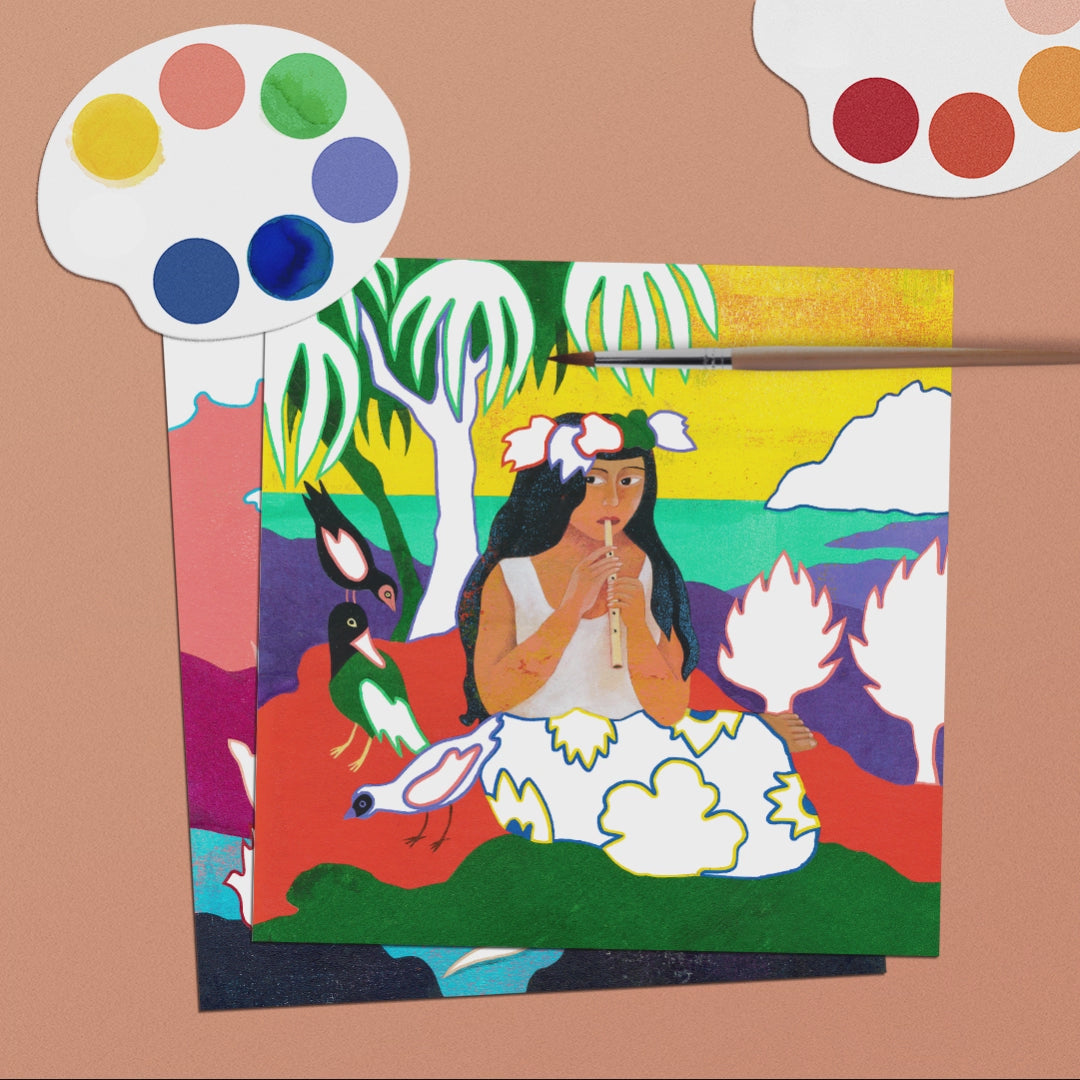 A painting activity that invites children to discover the style of Paul Gauguin, the great post-impressionist master. Little by little, colour is added to the paintings, bringing the women of Tahiti to life.