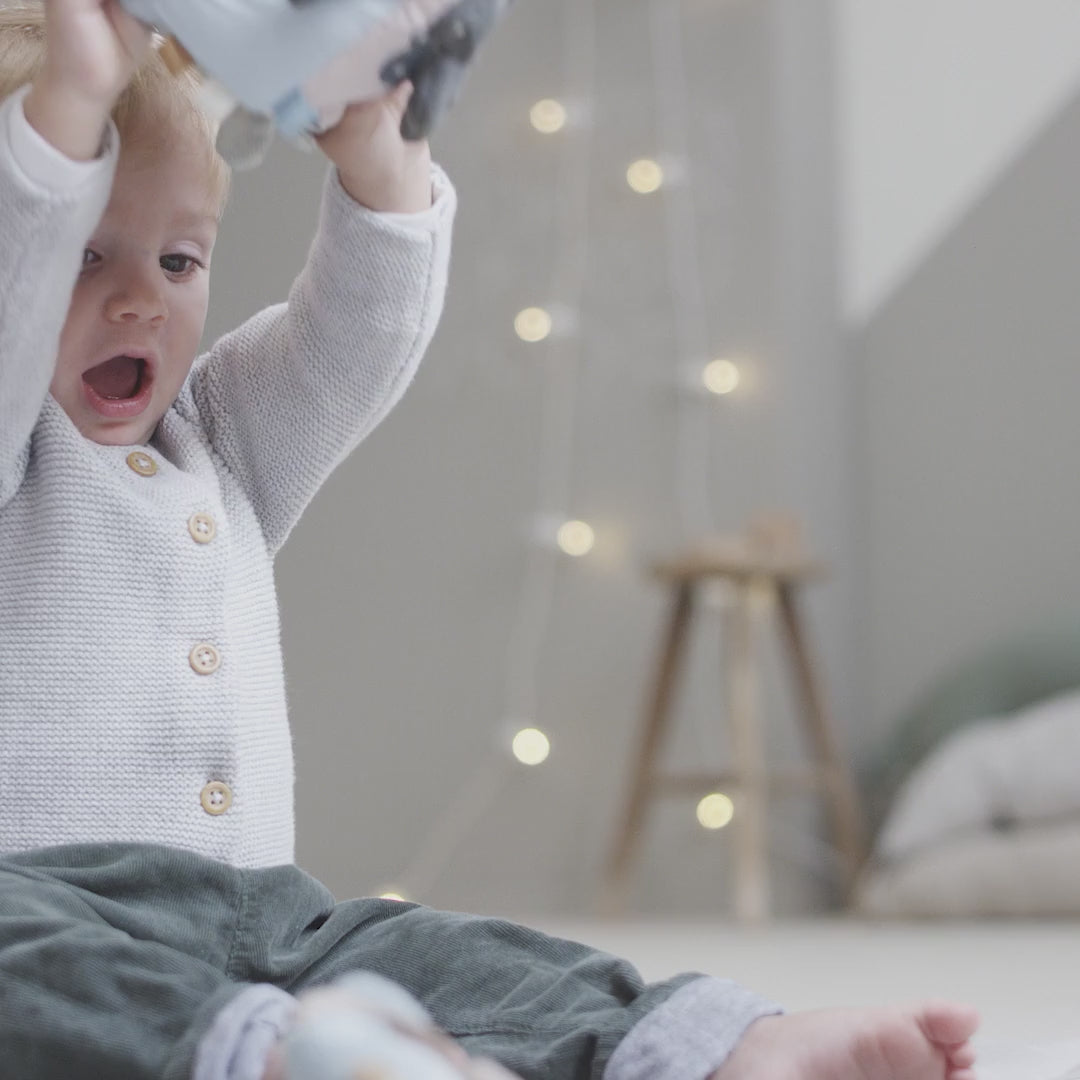 This wonderful Deer Friends Discovery Cube is a fun and educational toy for little ones that will captivate their senses with its stimulating fun activities and adorable characters. Leaves that crinkle, a soft baby mirror and Croco hiding behind a door are just some of the fun features this cube has to offer. Hide your own little treasures inside the cube or use the three cutely coloured, squeezable rattle balls that are included. This beautiful activity cube features the adorable Deer Friends and is sprinkled with the playful Happy Dots pattern.