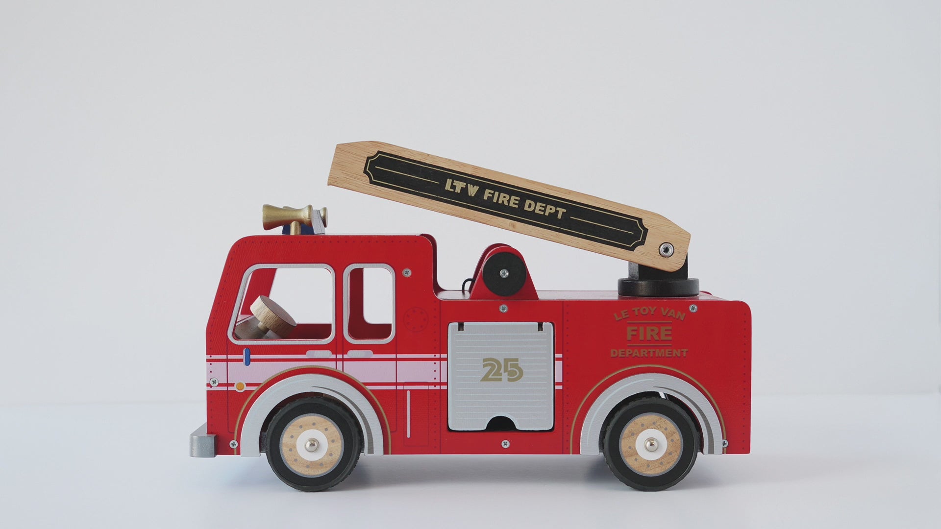 Call the emergency services! This amazing wooden fire engine is ready and waiting to put out fires and save the day.