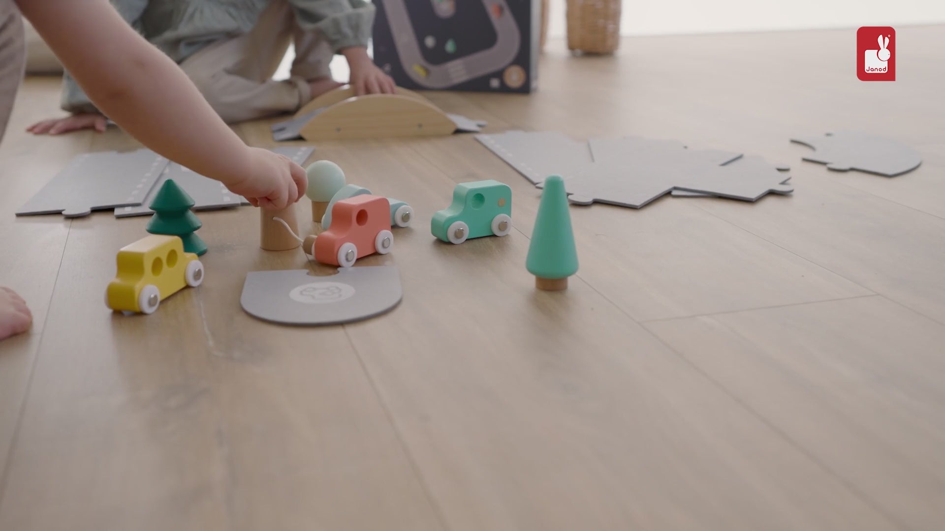 Vroom vroom. A super track circuit composed of 21 pieces - 12 felt pieces to form a large circuit and 9 wooden accessories - 4 cars including 1 (pretend) electric car, 1 charging station, 3 trees and 1 bridge. Little racers will be inspired to enjoy endless imaginative play driving their cars round this fantastic course, while also developing their dexterity, imagination and creativity. This beautiful early-learning toy is made from felt and sustainably sourced wood.
