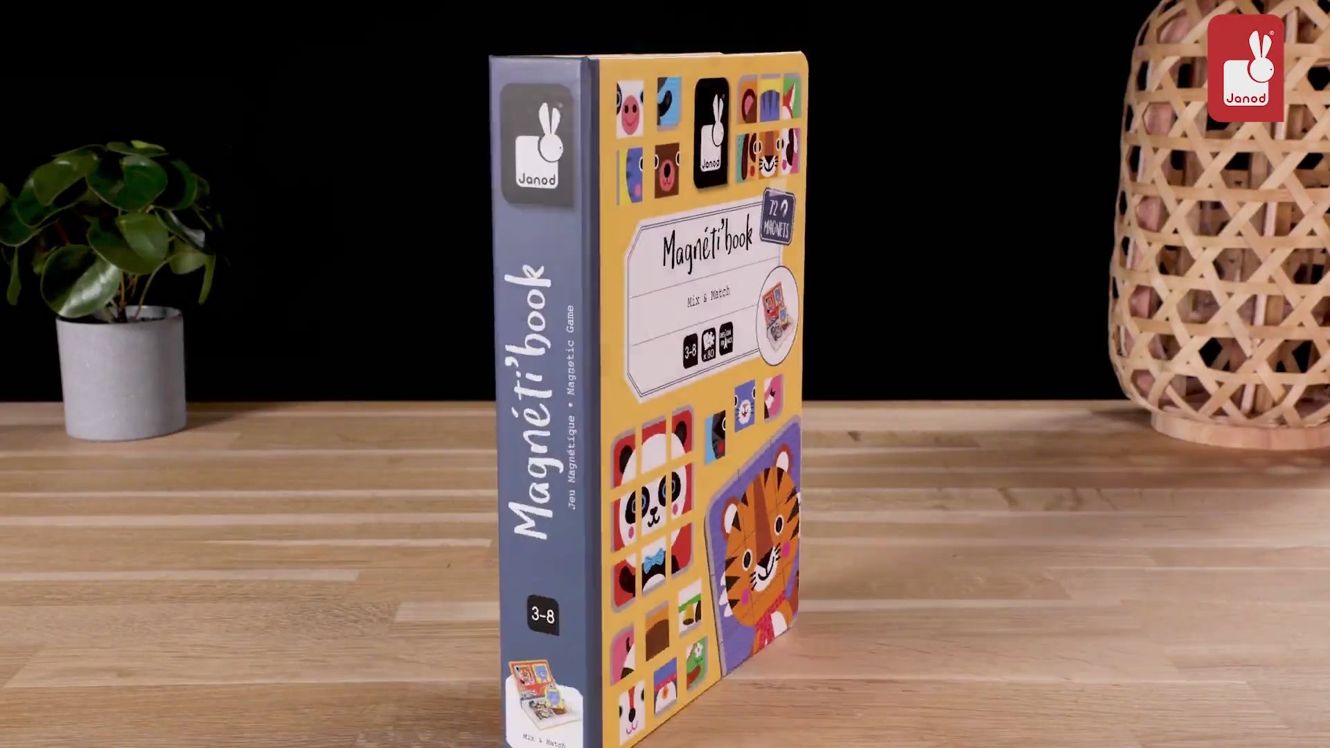 Cardboard magnetic educational game based on the theme of animals, composed of 72 magnets and 8 cards. Once the book is opened, the object of the game is to use the magnetic background for the placement of magnets to recreate the picture of the animal indicated on the card.