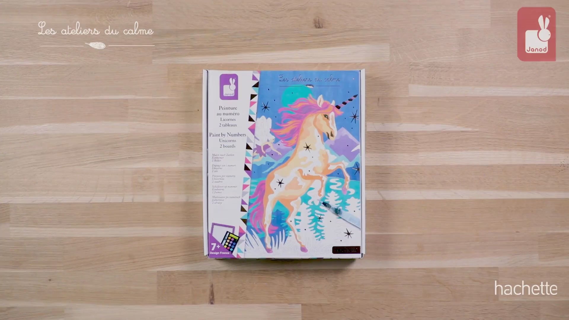 A palette of 15 watercolour paints, a sponge and a brush with water reservoir make this set an original activity. An explanatory booklet indicates the colour correspondence of each number. One of the two paintings has gilding effects for an even more spectacular result.