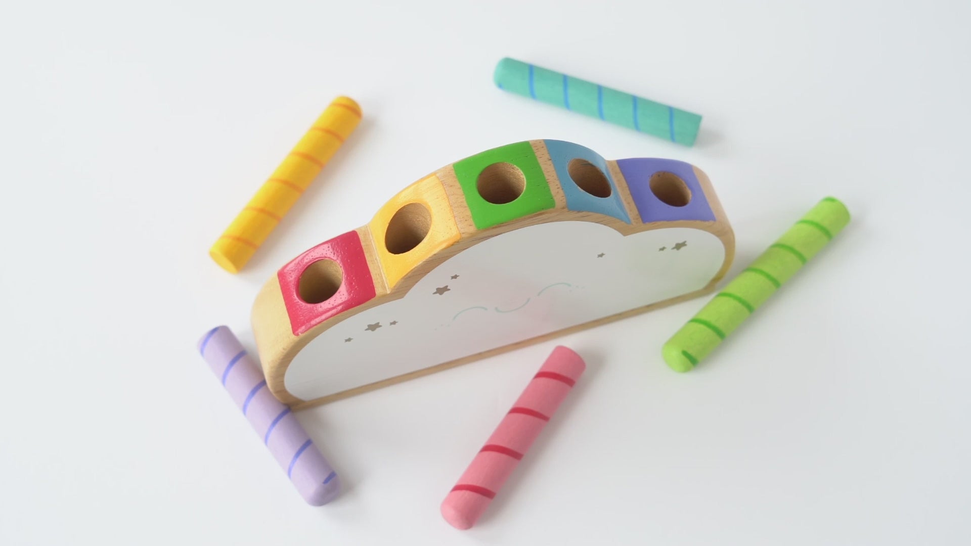 Get ready for some popping good fun! This rainbow cloud pop game is a classic. Little one's will love this interactive, spring loaded wooden toy, featuring five colourful rainbow pop-up rods in three heights.