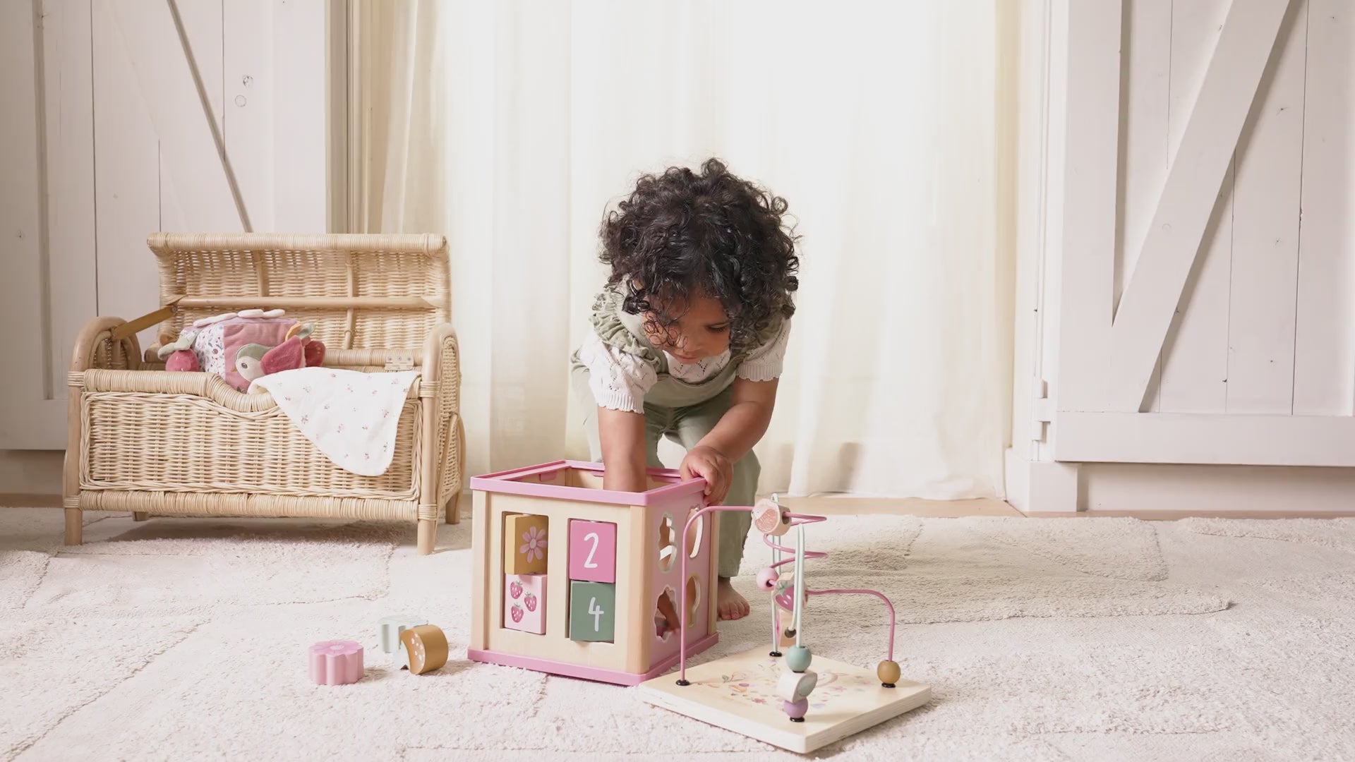 Fairy GardenEmbark on an adventure exploring every side of this entertaining cube of activities. Each side features delightful Fairy Garden elements and presents a fun educational activity, including a shape sorter, spinning gears, puzzles, and a challenging bead maze on top. Through each engaging task, your little one will enhance fine motor skills and be inspired to unleash their creativity. This activity cube not only stimulates curiosity in children but also ensures hours of playful discovery.