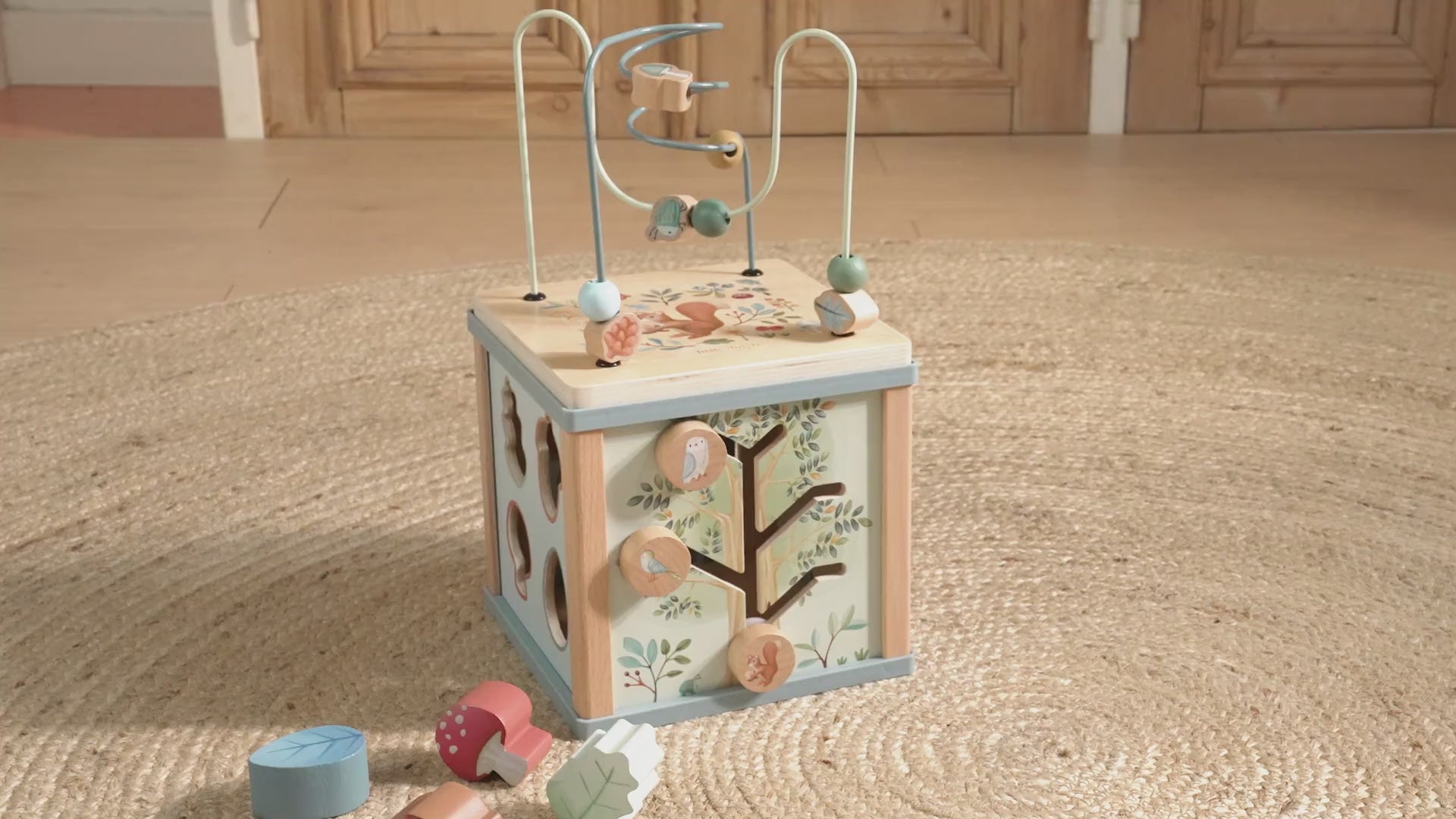 Forest FriendsEmbark on an adventure exploring every side of this entertaining cube of activities. Each side features delightful Forest Friends elements and presents a fun educational activity, including a shape sorter, spinning gears, puzzles, and a challenging bead maze on top. Through each engaging task, your little one will enhance fine motor skills and be inspired to unleash their creativity. This activity cube not only stimulates curiosity in children but also ensures hours of playful discovery.