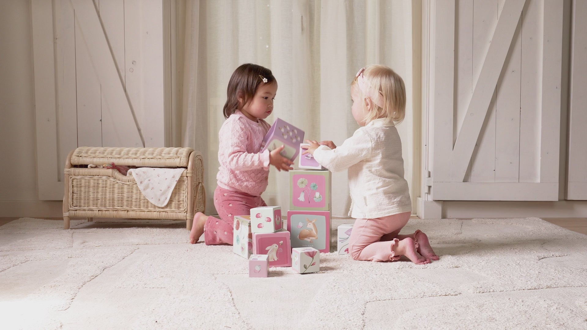 Fairy GardenStack one block on top of the other and see the magic of Fairy Garden grow. You can stack the blocks to build a tall tower, or lay them on the floor horizontally. Discover four enchanted scenes within. Construct a floral branch held by the loveliest woodland creatures. Organise them by numbers in two different ways or collect the individual pictures of garden elements. With these building blocks, children will playfully learn to count to 10.