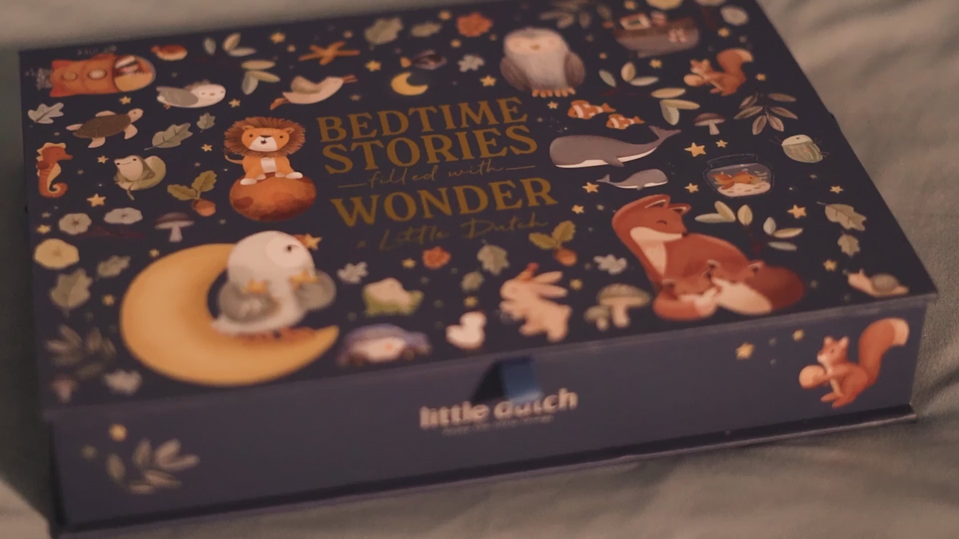 The Projector flashlight has a sturdy wooden handle and works on batteries, so that it can go anywhere. After the story you can easily store the flashlight and all accessories in the beautiful storage box. Perfect for children who like to discover and experience stories.