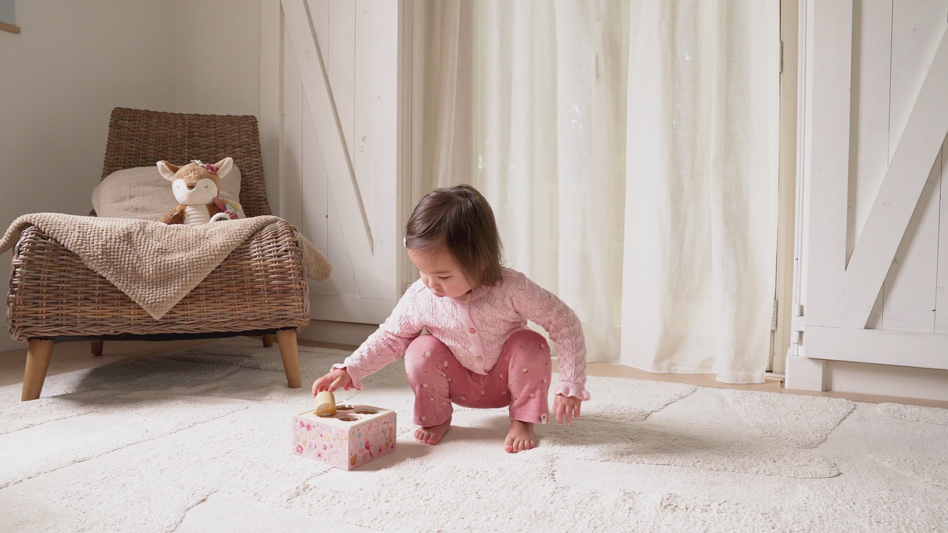 Fairy GardenFind the opening that matches the shape of the strawberry. And where do the mushroom, flower and leaf go. This wooden shape sorter is a creative sorting game that teaches your little one to recognise and match shapes and colours, and fine-tunes hand-eye coordination. The box is made of sturdy wood and illustrated with a lovely scene from the Fairy Garden. The shapes are designed for little hands to easily grasp and push through the correct opening. This classic toy is both educational and fun at the same time.