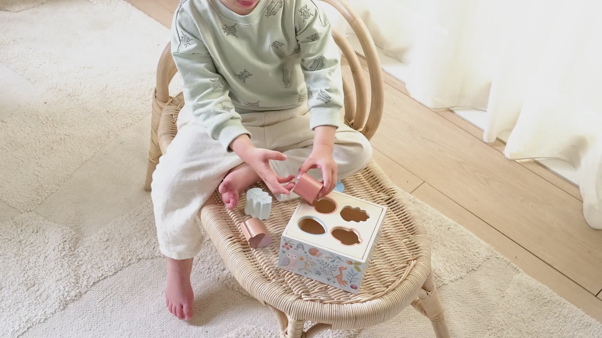 Forest FriendsFind the opening that matches the shape of the mushroom. And where do the acorn and leaves go. This wooden shape sorter is a creative sorting game that teaches your little one to recognise and match shapes and colours, and fine-tunes hand-eye coordination. The box is made of sturdy wood and illustrated with a lovely scene from Forest Friends. The shapes are designed for little hands to easily grasp and push through the correct opening. This classic toy is both educational and fun at the same time.