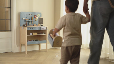 For little builders, this wooden tool belt is an absolute must-have. The adjustable belt is always comfortable and is filled with five different tools, such as a hammer, screwdriver, and wrench. Ideal for role-playing and developing motor skills. Combine it with the workbench and toolbox for a complete workspace. Ready to build and repair.