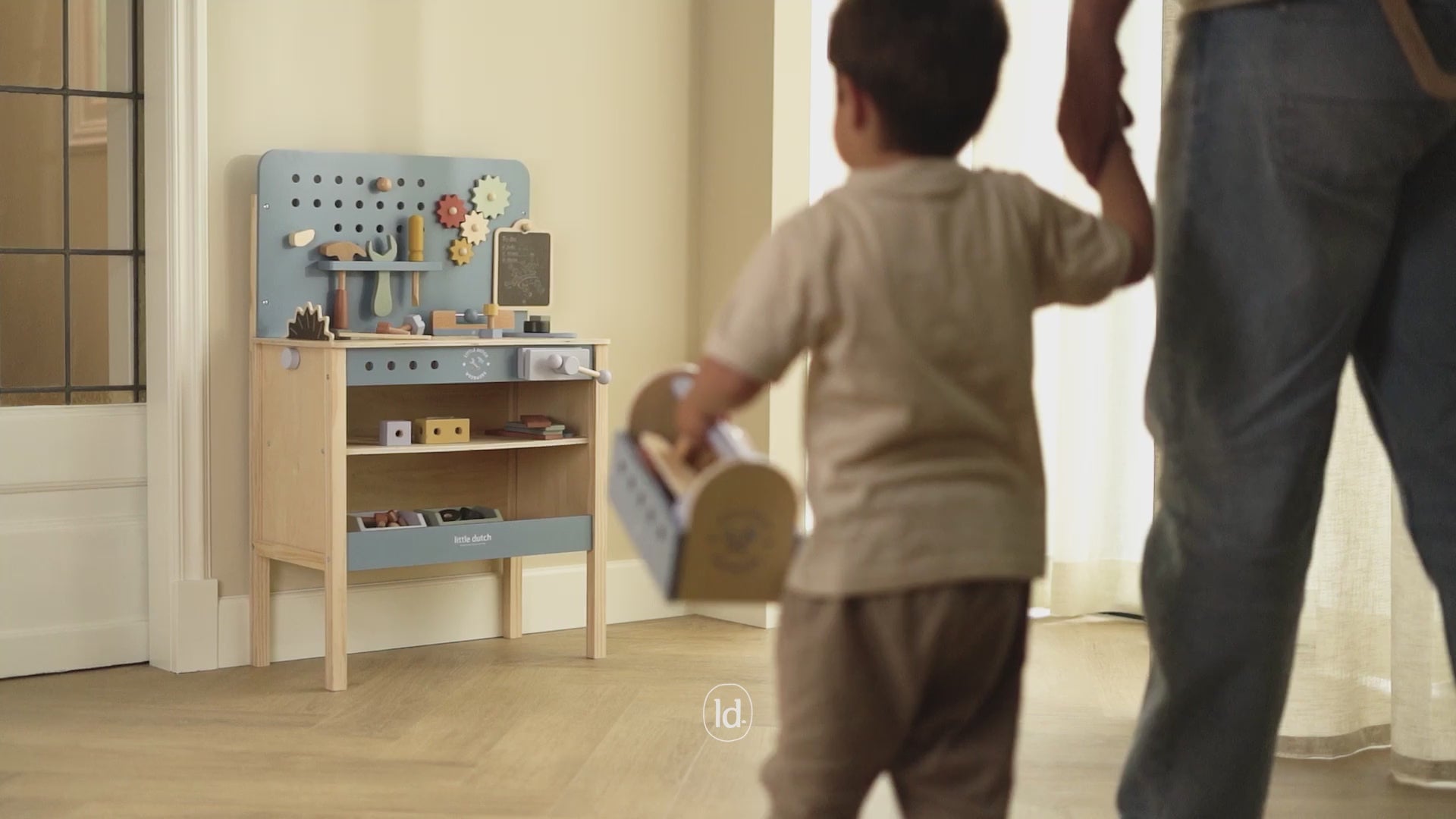 Blue ToolboxEverything a little carpenter needs. This wooden toolbox includes a hammer, screwdriver, and wrench—perfect for building the most wonderful creations. But that’s not all – the sides of the box can also be used as a pounding bench. This way, little ones can hammer and screw while playfully developing their motor skills and creativity. Ready to get started.