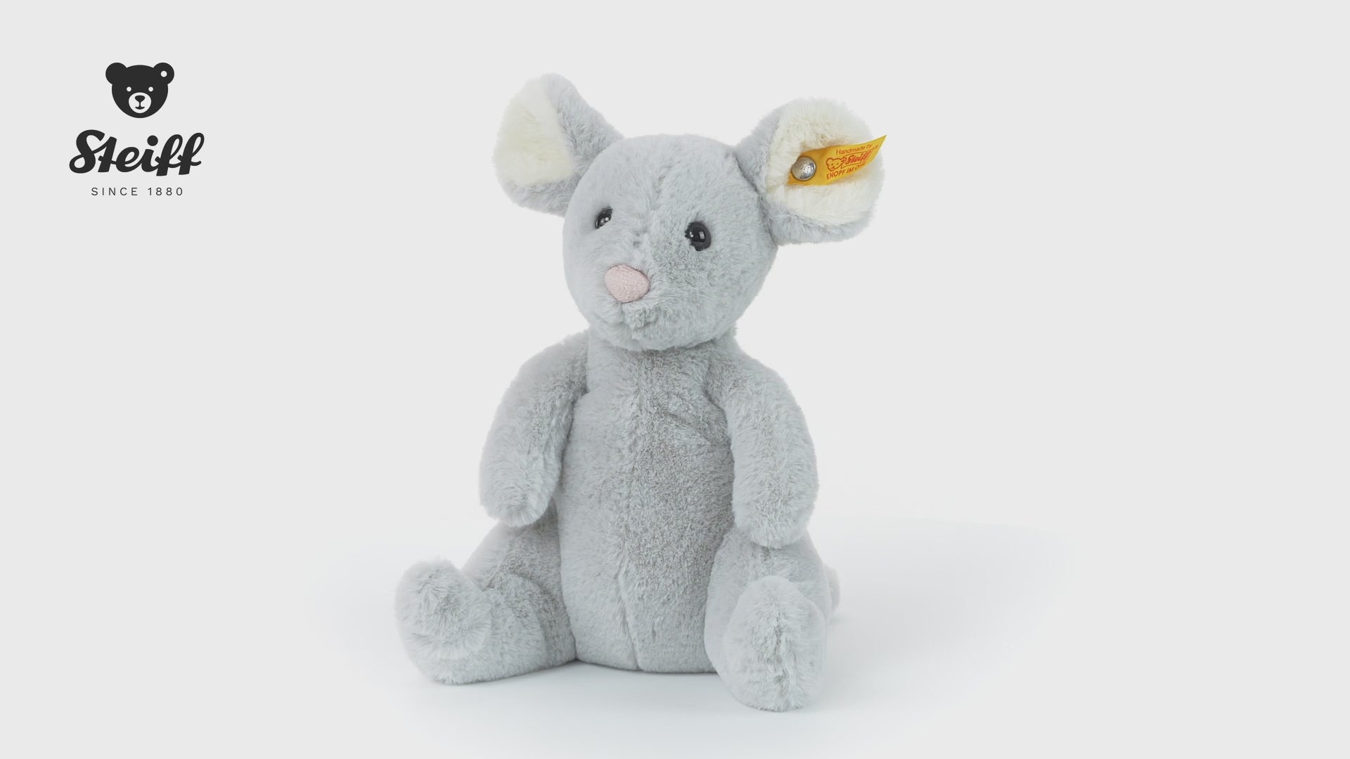 Give me that cheese., Cheesy Mouse seems to be saying as she raises her little paw so expectantly. The little mouse comes in cuddly, light grey plush and wants nothing more than to be cuddled. Oh well... maybe a piece of cheese to go with it. The little granulate bag in the back will ensure a good fit, even if her tummy is getting chubby.