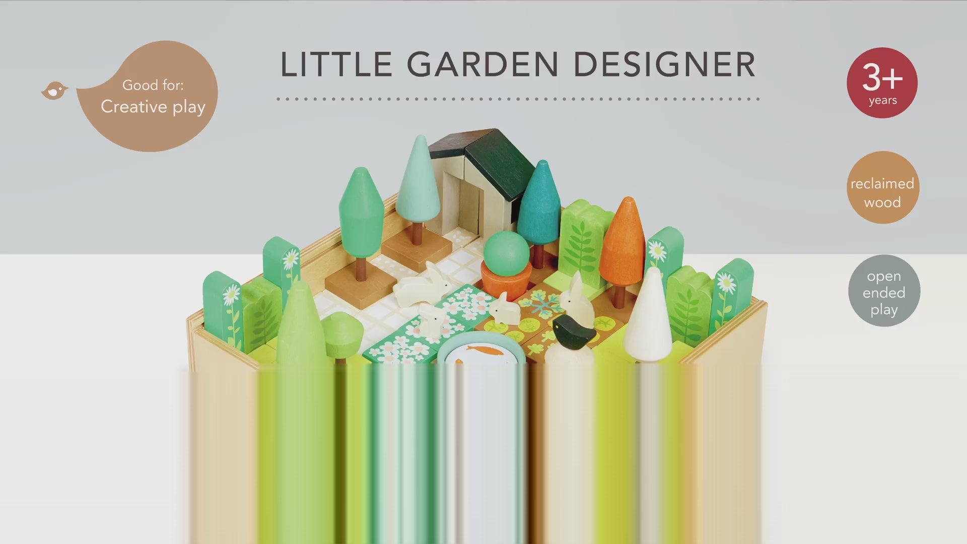 Part of the open ended play set range is this fabulous Little Garden Designer game, which has 64 solid wood pieces that can all be arranged in an infinite number of garden designs.