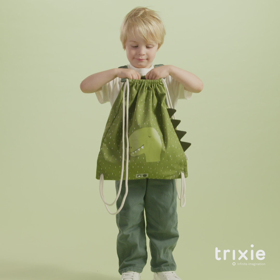 A fun and handy gym bag featuring an animal friend, which you can also use as a swimming bag thanks to its water-repellent coating. The floppy ears provide a nice playful detail. Use the 2 handy drawstrings to easily open and close the gym bag. There are a name tag and a small pocket inside to keep some small items, money or a membership card.